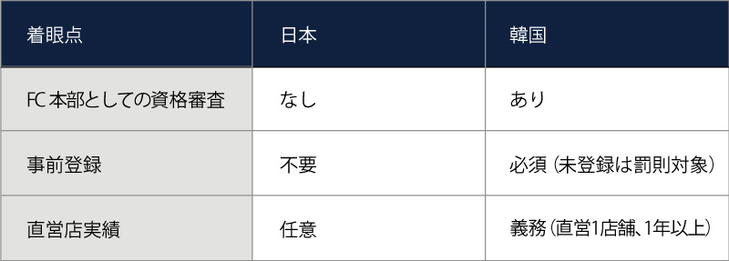 日本と韓国は、アジアにおけるフランチャイズ先進国でありながら、制度設計・行政規制・市場構造には大きな違いがあります。